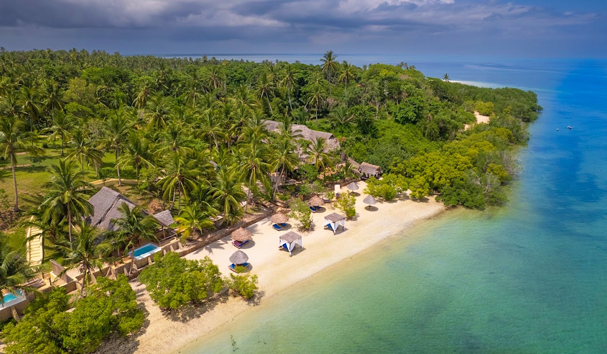Mirando hacia abajo sobre las perfectas aguas turquesas de la bahía de Chole en Isla de la mafiaPole Pole Bungalows le da la bienvenida a su hermoso entorno y su filosofía ecológica. Aquí, el lujo se integra armoniosamente con la naturaleza, garantizando una estancia inolvidable.