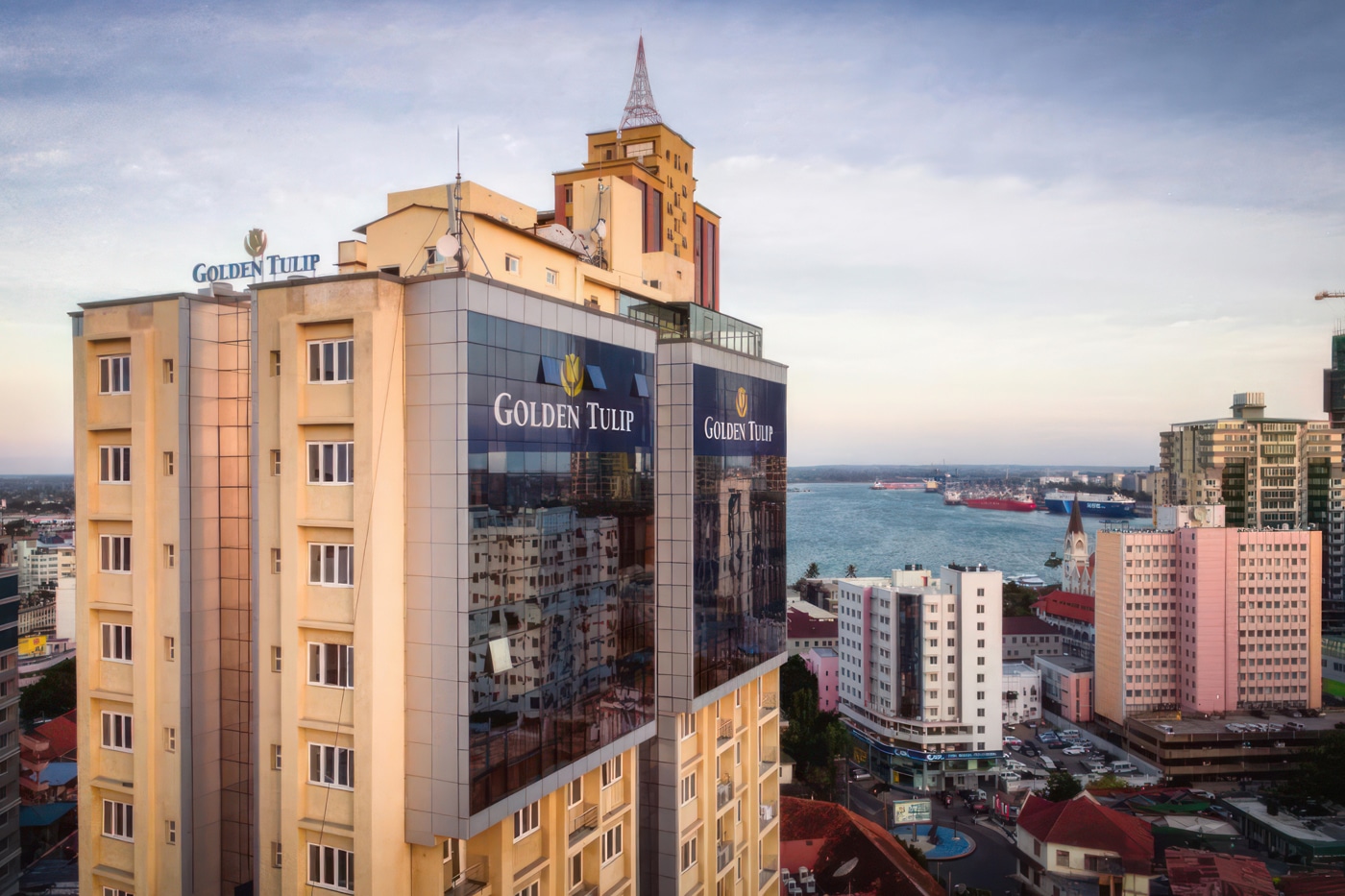 ゴールデンチューリップ ダルエスサラーム市 センターは21階建てで、海とダルエスサラーム市街の絶景を一望できる絶好のロケーションを誇ります。世界的なゴールデンチューリップチェーンに加盟する当ホテルは、すべてのお客様に確かなラグジュアリーな滞在をご提供いたします。