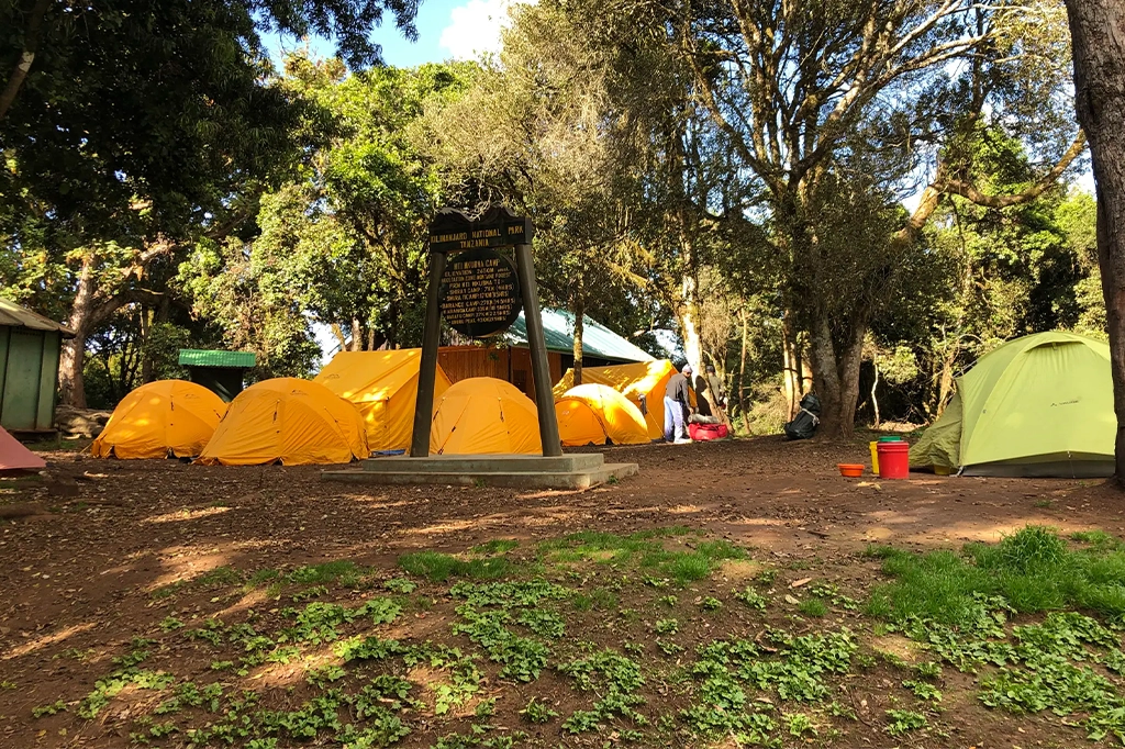 Mti Mkubwa Camp ligger på cirka 2 650 meters höjd och erbjuder en lugn introduktion till bergets ekosystem.